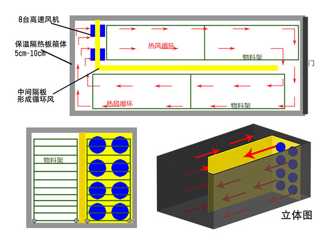 (1)烘干效率(產(chǎn)量)提高50%:舒適方便、自動(dòng)化、智能化程度高,采用自動(dòng)控恒溫裝置,24小時(shí)連續(xù)干燥作業(yè),產(chǎn)能高;