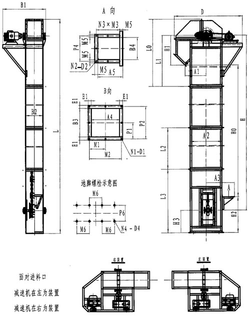 料斗把物料從下面的儲(chǔ)藏中舀起,隨著輸送帶或鏈提升到頂部,繞過(guò)頂輪后向下翻轉(zhuǎn), 斗式提升機(jī)將物料傾入接受槽內(nèi)。帶傳動(dòng)的斗式提升機(jī)的傳動(dòng)帶一般采用橡膠帶,裝在下或上面的傳動(dòng)滾筒和上下面的改向滾筒上。鏈傳動(dòng)的斗式提升機(jī)一般裝有兩條平行的傳動(dòng)鏈,上或下面有一對(duì)傳動(dòng)鏈輪,下或上面是一對(duì)改向鏈輪。斗式提升機(jī)一般都裝有機(jī)殼,以防止斗式提升機(jī)中粉塵飛揚(yáng)。