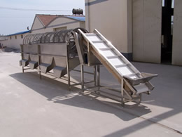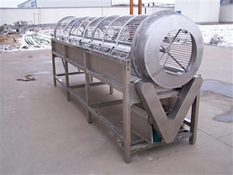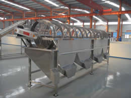 滾筒分級機(jī)又稱為鼠籠式分級機(jī):除機(jī)架傳動部分,其余均為不銹鋼衛(wèi)生級304制作,篩網(wǎng)先沖孔,后經(jīng)機(jī)械卷圓處理,使之在使用過程中不傷害物料,篩網(wǎng)孔徑也可根據(jù)用戶要求設(shè)計制作,產(chǎn)品通過提升機(jī)輸送到分級機(jī)里面,由于傳動作用,滾筒在不停地運轉(zhuǎn),物料從小到大分級出來??蓪⒃戏譃?-10等級。大棗分級機(jī)使用范圍:本機(jī)適用于大棗、冬棗、小西紅柿、蒜米、山楂、桃子、胡蘿卜、桔子、香菇、土豆、洋蔥等分級使用,具有分級標(biāo)準(zhǔn)、效率高等優(yōu)點,配套調(diào)速電機(jī)及防撞墊,可根據(jù)品種調(diào)節(jié)速度減小撞擊力,保障產(chǎn)品無破損。