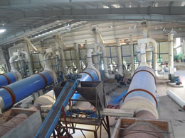 烘干機(jī)系統(tǒng)密封性能好,并配有完善的除塵裝置,粉塵小外溢,操作環(huán)境好。選用LX型多組合式揚(yáng)料板,使物料進(jìn)入烘干筒內(nèi)呈雨?duì)盍夏?,增加了物料與熱空氣的接觸面,避免了熱空泛的發(fā)生