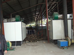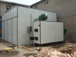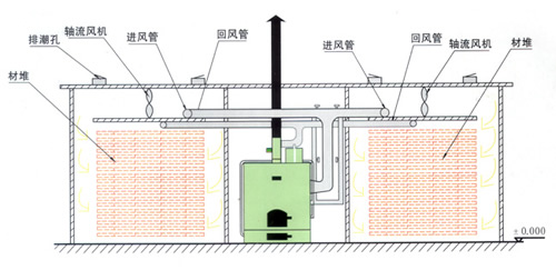 采用功能獨特的熱源發(fā)生裝置,保證有足夠的熱源供給干燥窯,干燥初期由于有大量熱源進入室內(nèi),加大室內(nèi)濕度防止物料烘壞。