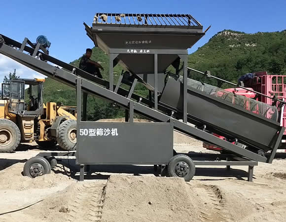 設(shè)計(jì)合理,結(jié)構(gòu)緊湊,移動(dòng)維護(hù)方便,更換篩底僅需10分鐘。裝載機(jī)一次裝料,不需要輸送,直接篩分。