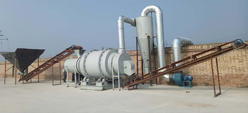 在筒體內(nèi)的石英砂會被內(nèi)部安裝的擋板,統(tǒng)稱揚料板揚起,由于揚料板設(shè)計的形式多樣,石英砂會在不同的高度被揚起,形成錯落的石英砂流,高溫氣流就從其中穿過,增加了與石英砂的接觸時間和接觸面,使內(nèi)部的水分干燥更快,如此反復循環(huán)幾個回合之后,石英砂與水分徹底分離,水分受熱在筒體的頂部被風機抽出,干燥的石英砂則從下料口出料。被抽出的高濕氣體種會含有一些石英砂粉末顆粒,排放到環(huán)境種會用污染,一般需要經(jīng)過旋風除塵器過濾下即可。