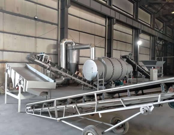 石英砂烘干機物料經(jīng)過圓盤給料機給料到皮帶機上,由輸送機運輸?shù)浇?jīng)過熱風爐的流沙管,通過流沙管進入到烘干機筒內(nèi),在內(nèi)筒固定攪拌葉輪和向前旋葉片的作用下沙子很快向前推進,在此過程中與進入筒體內(nèi)的熱氣流進行接觸。