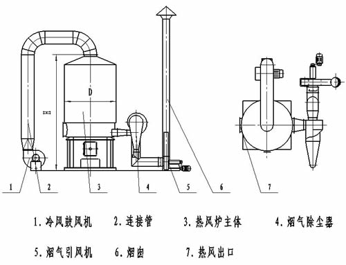 該爐為通用性熱風(fēng)加熱裝置,與各種物料的干燥設(shè)備配套使用